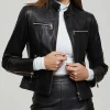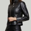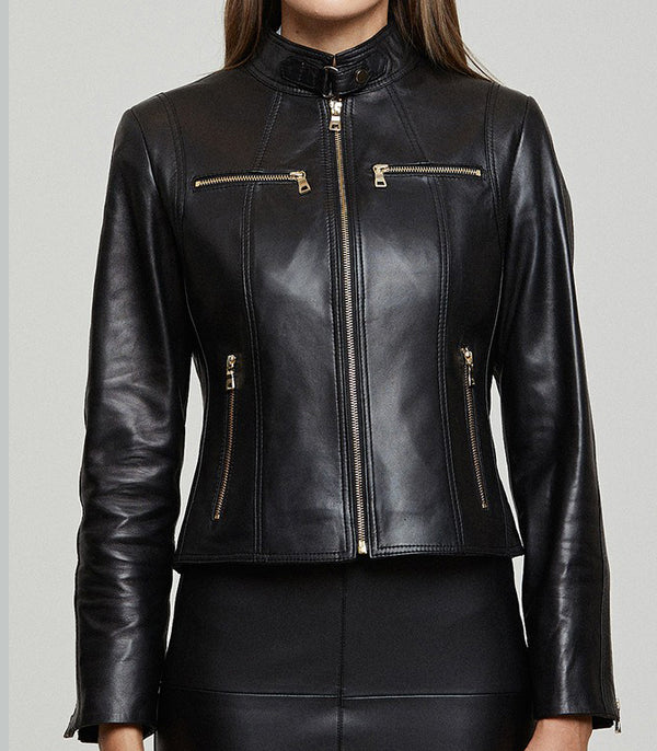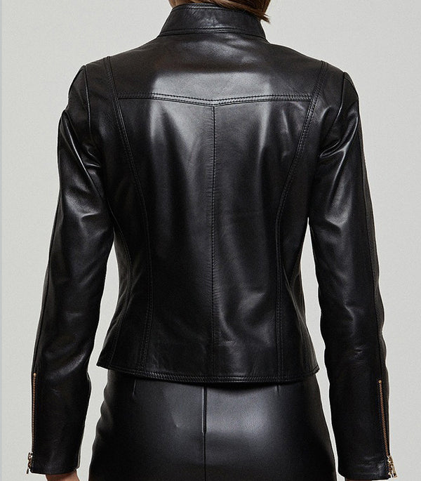 - Elevate your style with this iconic black leather jacket for women.