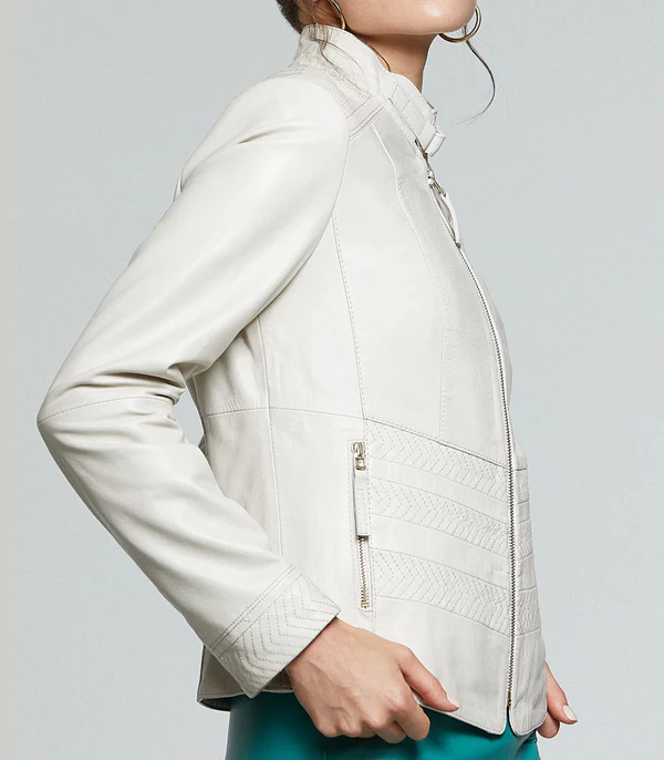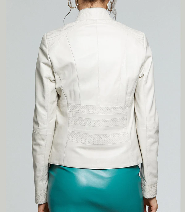 Angela White Leather Jacket For Women
