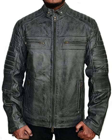Cafe Racer Vintage Grey Wax leather Jacket For Men’s