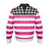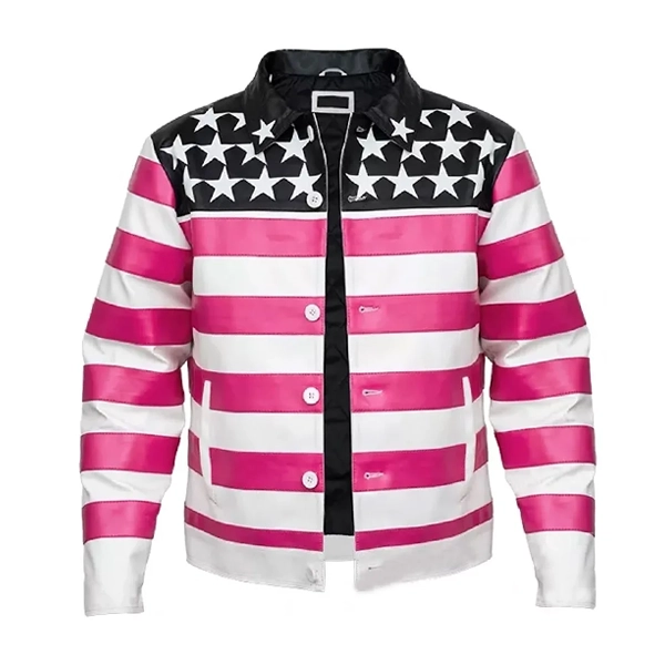 This Lil Uzi Vert American Flag Jacket is made from high-quality real leather and comes in attractive pink and white color combination.