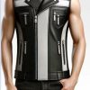 - Make a statement with our Red & White Leather vest for men, a bold choice for the modern man.