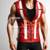 - Make a statement with our Red & White Leather vest for men, a bold choice for the modern man.