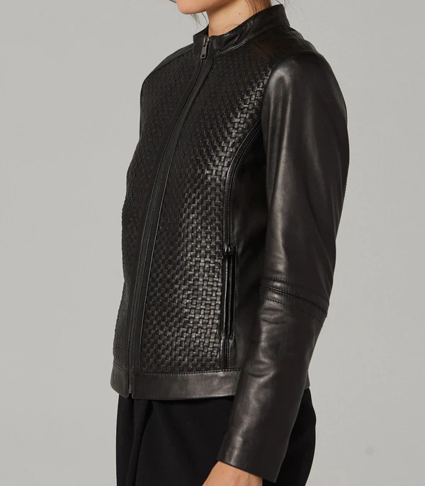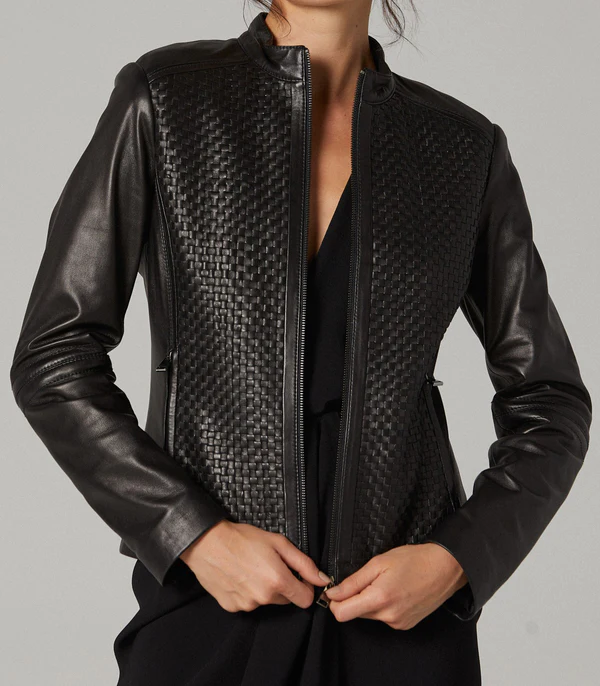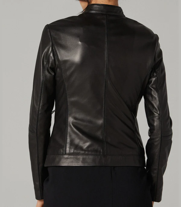 - Elevate your style with this iconic black leather jacket for women.