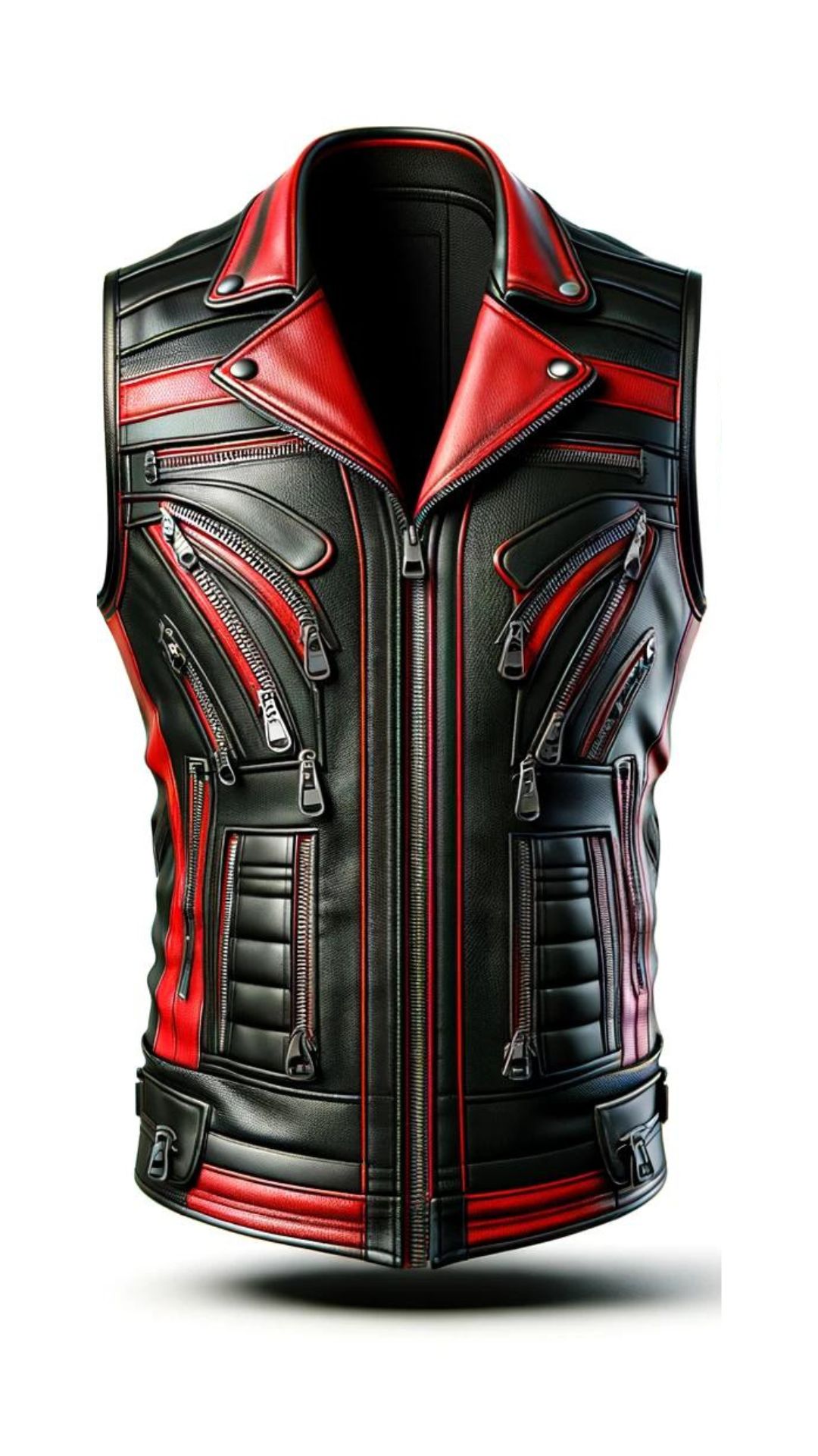 Stylish black and Red Biker Leather Vest Men